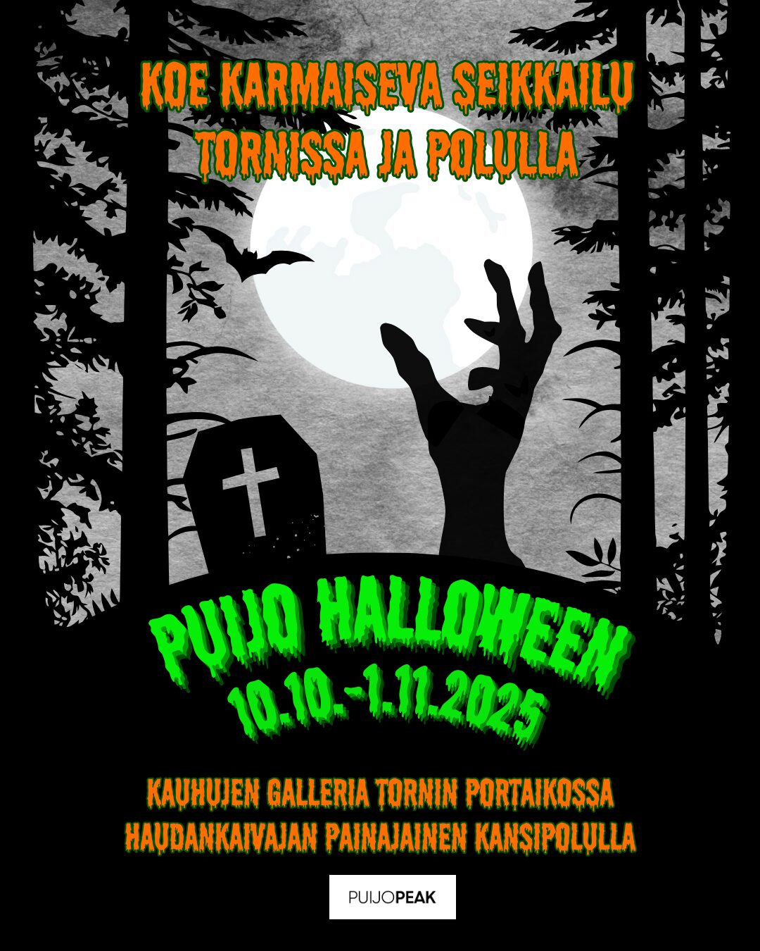 – Lipunmyynti tornissa ja ulkomyyntipisteessä klo 20:30 asti. - Ääni- ja valotehostein sekä koristein luotu ainutlaatuinen Halloweenpolku ja tornin Kauhujen galleria ovat koettavissa Puijolla 10.10-1.11.2025 joka päivä klo 21 asti.