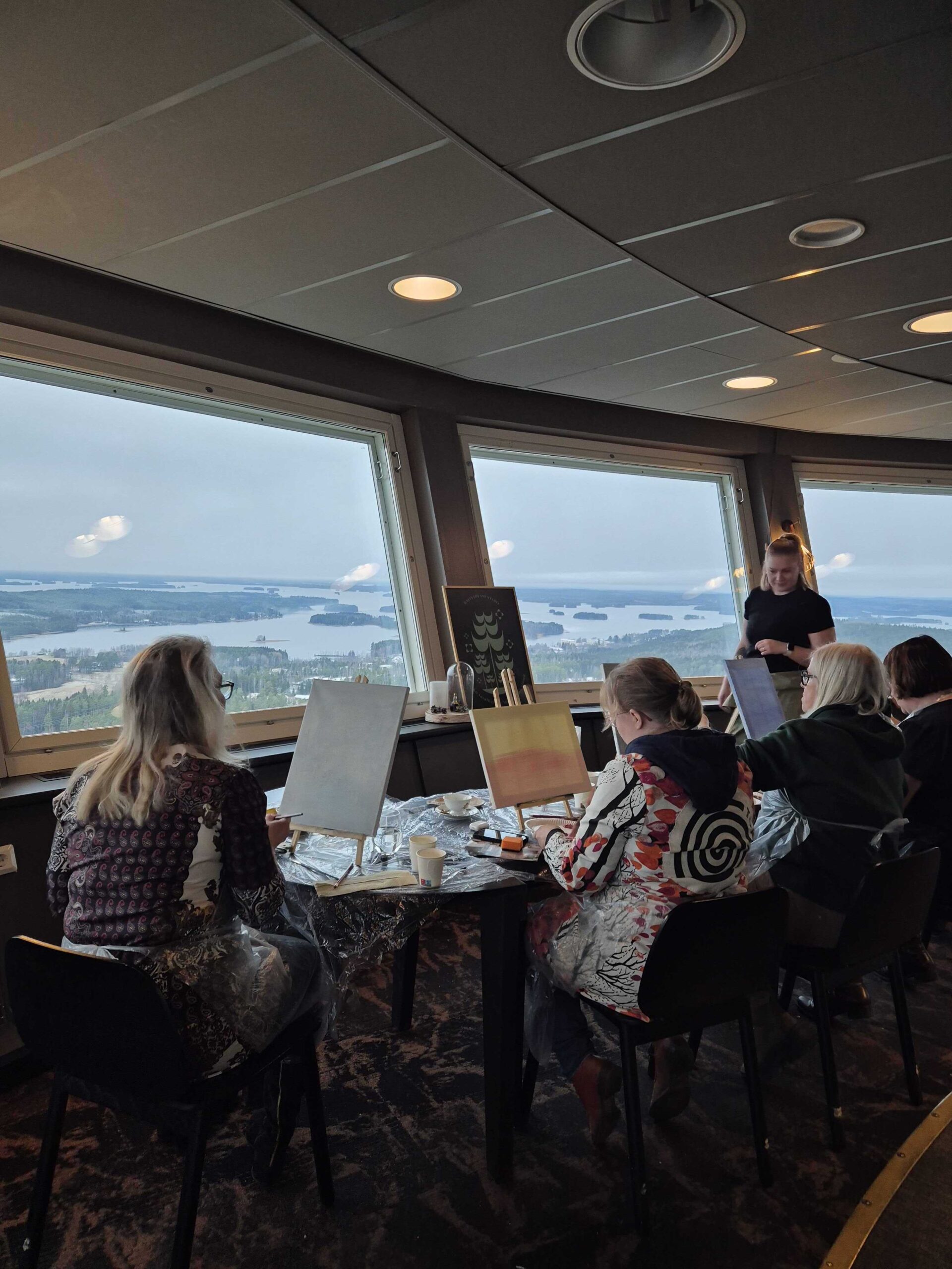Yksityiset maalaustyöpajat voidaan toteuttaa joko Kuusikko saunakabinetissa tai Puijon Tornissa.